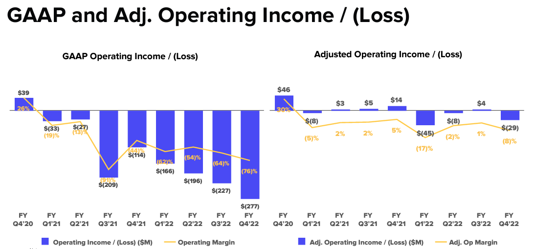 - 순손실은 2021 회계연도 4분기 1억 2,340만 달러에 비해 1억 8,640만 달러였다.