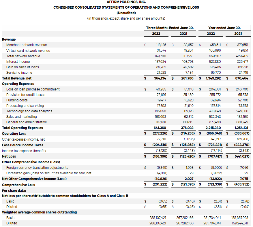 어펌(AFRM) 2022 Q4 실적발표 씸플어닝입니다.