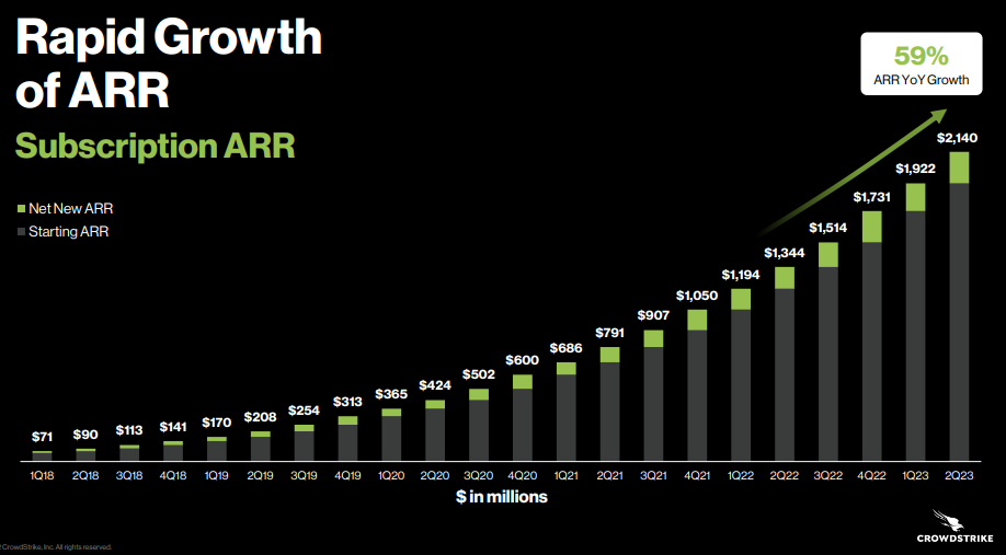 - 연간 반복 수익(ARR)은 전년 동기 대비 59% 증가했으며 2022년 7월 31일 현재 21억 4천만 달러로 증가했으며, 이 중 2억 1,810만 달러가 분기에 순 신규 ARR로 추가되었습니다.