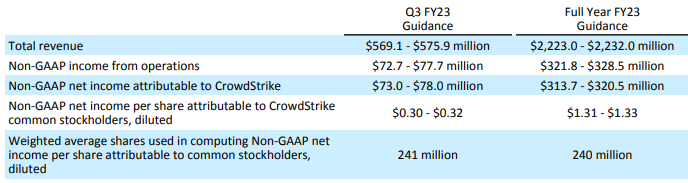 - CrowdStrike에 귀속되는 순손익: CrowdStrike에 귀속되는 GAAP 순손실은 2022 회계연도 2분기 5730만 달러에 비해 4,930만 달러였습니다. 크라우드스트라이크에 기인하는 GAAP 주당 순손실은 2022 회계연도 2분기 0.25달러에 비해 기본 및 희석액은 0.21달러였다. 크라우드스트라이크로 인한 비GAAP 순이익은 2022 회계연도 2분기 2590만 달러에 비해 8,590만 달러였다. 희석된 주당 크라우드스트라이크로 인한 비GAAP 순이익은 2022 회계연도 2분기 0.11달러에 비해 0.36달러였다.