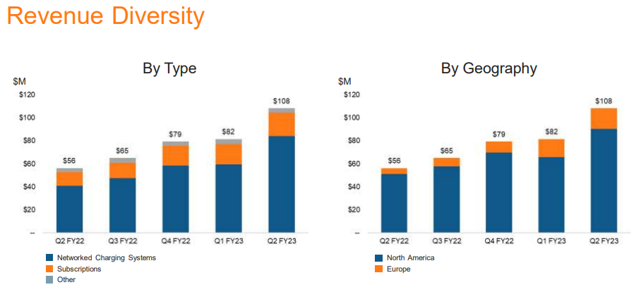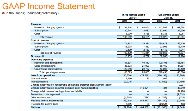 - 수익. 2분기 매출은 1억830만 달러로 전년 동기 5,610만 달러보다 93% 증가했다. 2분기 네트워크 충전 시스템 매출은 8,410만 달러로 전년 동기 4,090만 달러보다 106% 증가했으며 가입 수익은 2,20만 달러로 전년 동기 1,210만 달러보다 68% 증가했다.