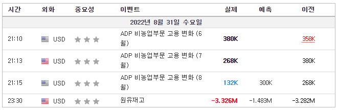 - 미국 ADP 고용 변화 실제 132,000(예상 300,000, 이전 128,000)