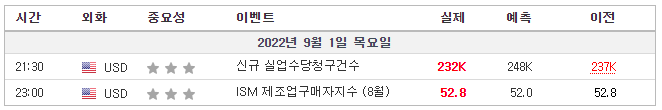 ✅미국 최초 실업수당 청구액 실제 232k(예상 247.5k, 이전 243k)