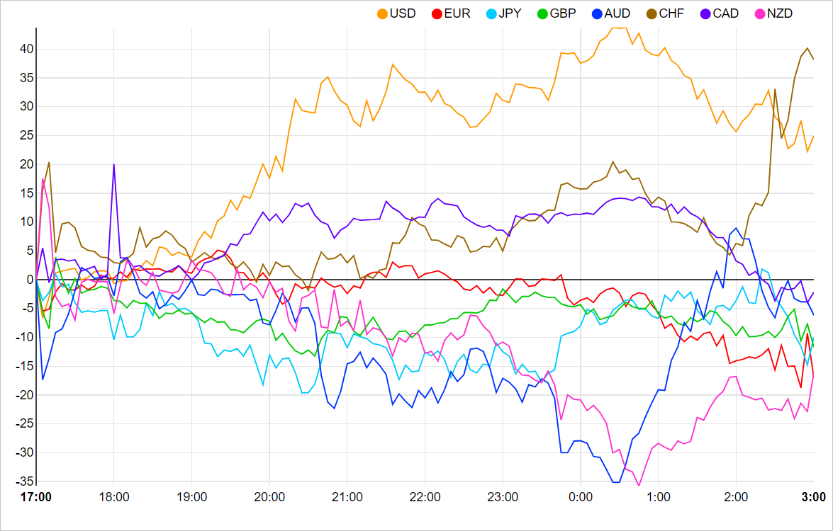 ✅통화 강도 차트: 가장 강함 - CHF, 가장 약함 - EUR.