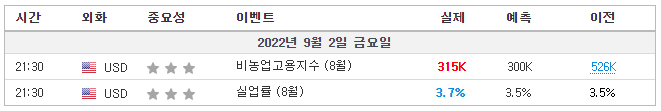 ✅미국 비농업 급여 실제 315k(예상 298k, 이전 528k)