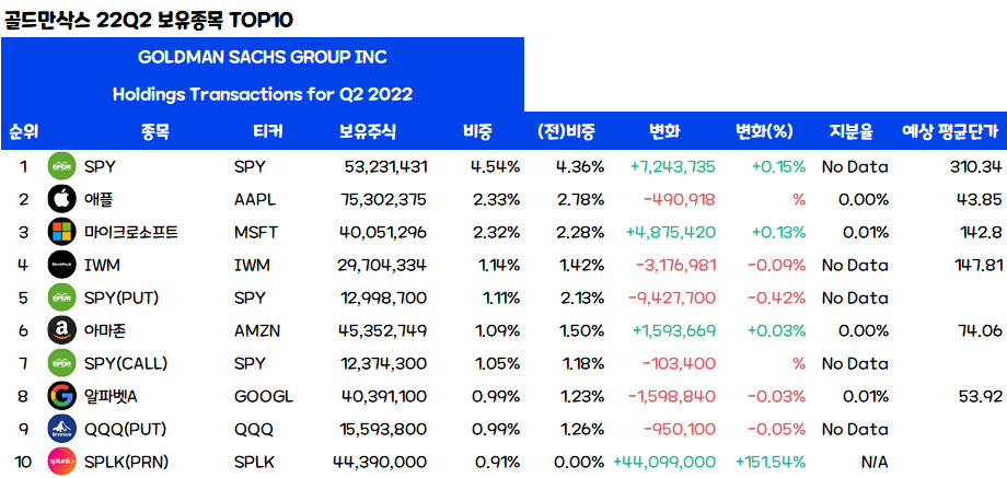 과연 골드만삭스 22Q2 보유종목 TOP10은 무엇일까요?