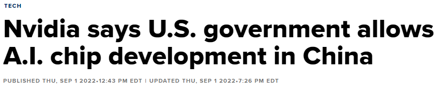 - "미국 정부는 엔비디아 코퍼레이션 또는 회사의 H100 집적회로 개발을 계속하는 데 필요한 수출, 재수출 및 국내 이전을 승인했다"