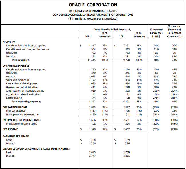 오라클(ORCL) 2022 Q1 실적발표 씸플어닝입니다.