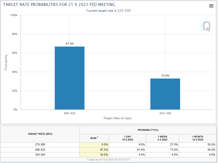 - 미국 금리 선물은 9월 연준 회의 100 bps 인상 가능성을 CPI 이후 데이터 19%에서 35%로 끌어올린다.