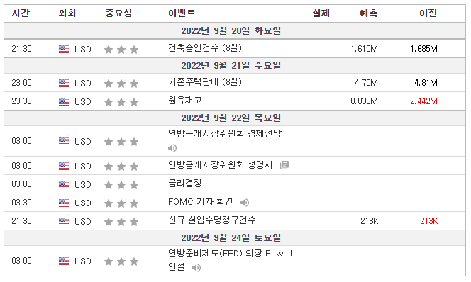 | 9월 5주차 미국 주요 경제일정 및 실적발표일 (6) | 2022.09.26 |