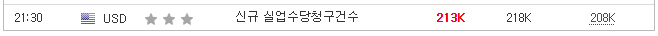 ✅미국 최초 실업수당 청구실제 213k(예측 217k, 이전 213k)