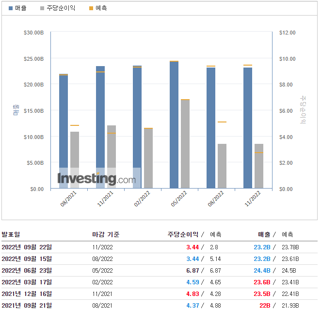 | 코스트코(COST) 2022 Q4 실적발표 (4) | 2022.09.24 |