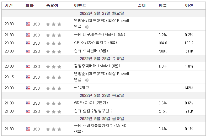 | 9월 4주차 미국 주요 경제일정 및 실적발표일 (2) | 2022.09.18 |