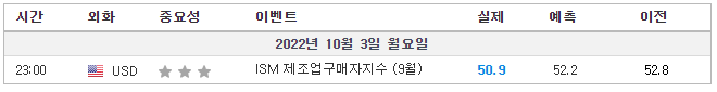 ✅미국 ISM 제조 PMI 실제 50.9(예측 52.1, 이전 52.8)