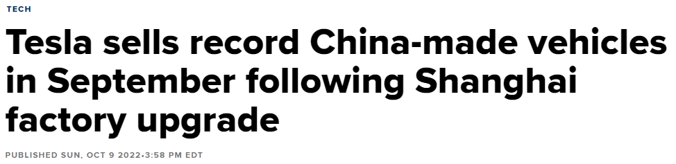 📌중국 승용차 협회에 따르면 테슬라는 9월 중국산 자동차 83,135대를 판매하여 중국 월간 판매 기록을 갈아치움