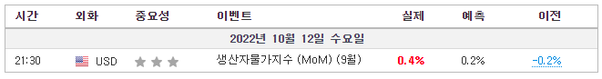 - 미국 PPI MoM 실제 0.4% (예측 0.2%, 이전 -0.1%)