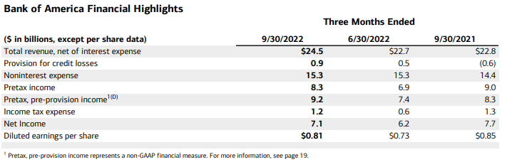 뱅크오브아메리카(BAC) 2022년 3분기 실적발표 씸플어닝입니다.