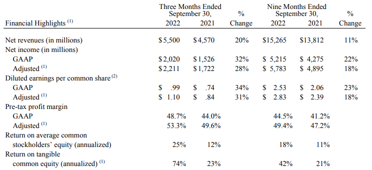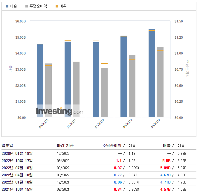 - 2022년 9월 30일에 종료된 9개월 동안의 순이익은 전년 동기 43억 달러와 비교하여 52억 달러였다.