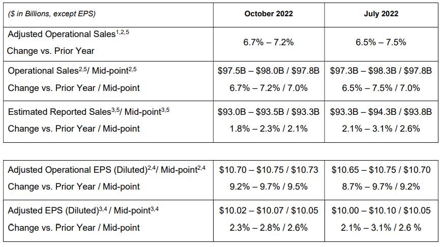 - 회사는 조정된 운영 매출 및 보고된 조정된 EPS에 대한 2022년 전체 지침 중간점을 유지하고 있습니다. 조정된 운영 EPS 성과를 증가시켜 지속적인 불리한 통화 영향을 상쇄합니다.