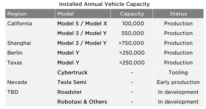 - 테슬라는 수요일 주주 데크에서 ”다년간 차량 인도량에서 연간 50% 성장을 달성할 것으로 기대한다”고 이전 지침을 되풀이했다.