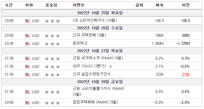 | 10월 1주차 미국 주요 경제일정 및 실적발표일 (4) | 2022.10.03 |