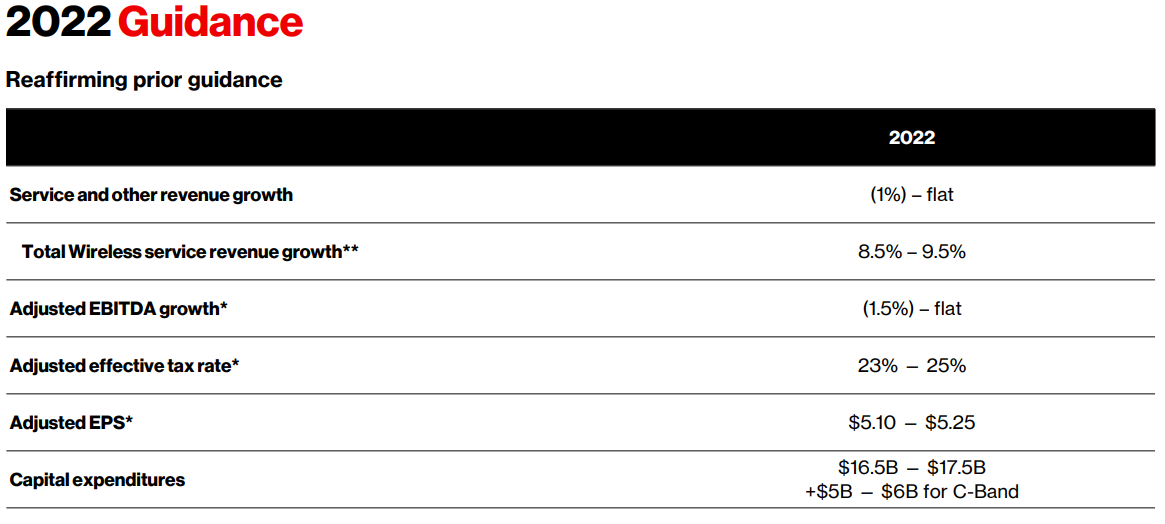 - 자본 지출 : 165억 달러 - 17.5억 달러 + 50억 달러 ~ C-Band에 60억 달러