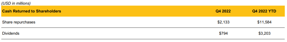 - 29억 달러의 자본금을 주주들에게 주식 환매 및 배당금 형태로 반환
