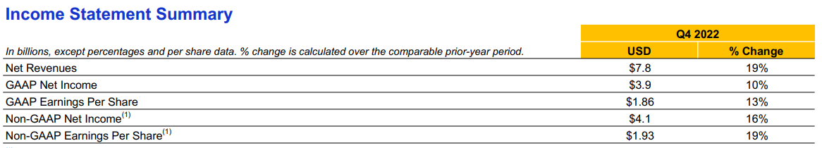 - GAAP 순이익은 주당 $150.0억 또는 $7.00이며 비GAAP 순이익은 주당 $16.0억 또는 $7.50입니다.