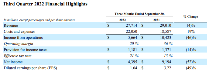 - 주식 환매 – 2022년 3분기에 클래스 A 보통주 65억 5천만 달러를 환매했습니다. 2022년 9월 30일 현재, 우리는 177억 8천만 달러를 사용할 수 있고 재구매를 승인받았다.