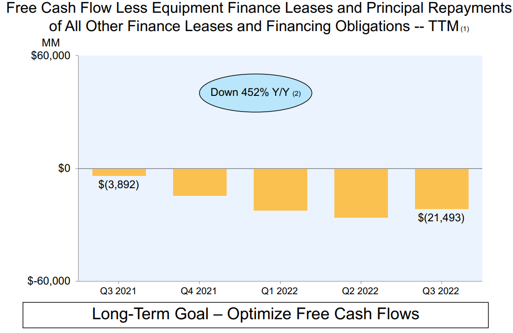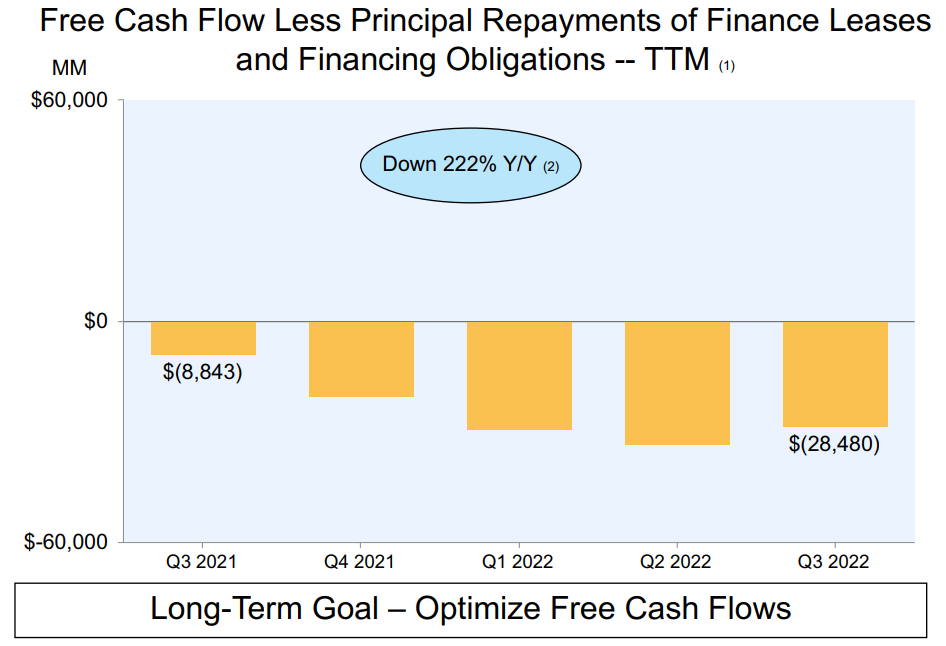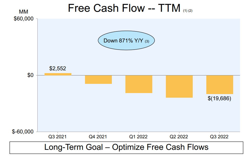 - 2021년 9월 30일에 종료된 12개월 동안 26억 달러의 유입과 비교하여 자유 현금 흐름은 후속 12개월 동안 197억 달러의 유출로 감소했습니다.