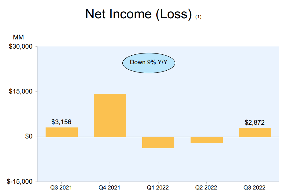- 2022년 3분기 순이익은 리비안 오토모티브에 대한 보통주 투자로 인한 영업외 수익에 포함된 11억 달러의 세전 평가 수익을 포함합니다.