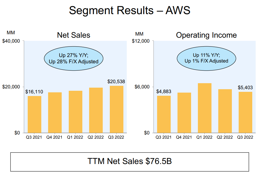 - 2021년 3분기 영업이익 49억 달러와 비교해 AWS 부문 영업이익은 54억 달러였다.
