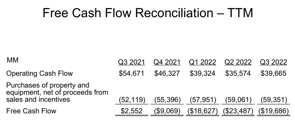 - 영업 현금 흐름은 2021년 9월 30일에 종료된 12개월 동안의 547억 달러와 비교하여 후속 12개월 동안 397억 달러로 27% 감소했습니다.
