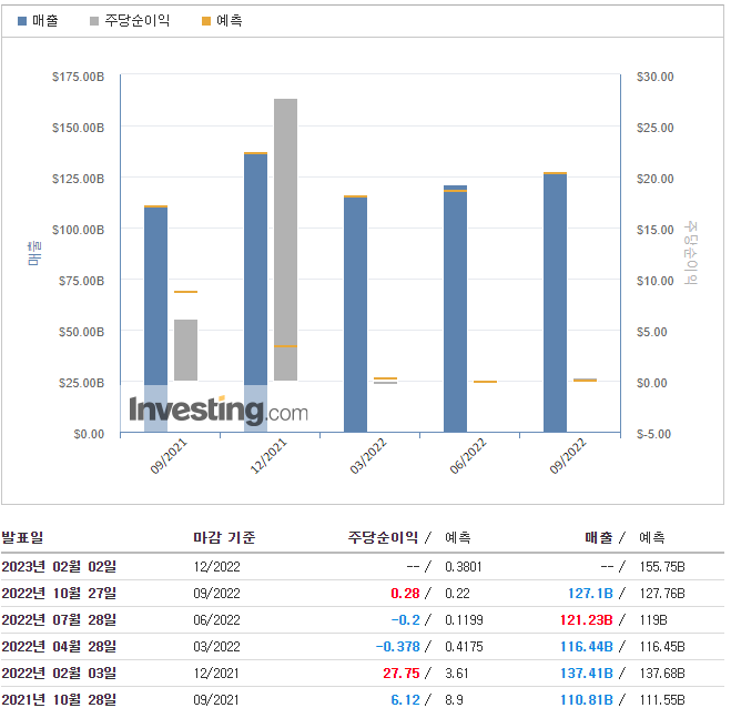 - 순이익은 2021년 3분기 32억 달러(희석주식 1주당 0.31달러)에 비해 3분기에는 29억 달러(희석주식 1주당 0.28달러)로감소했다.