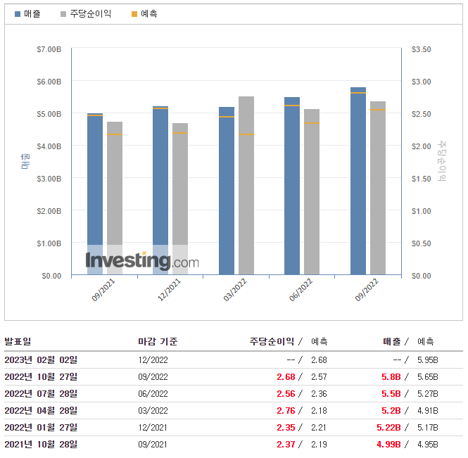 - 예측 : $5.65B (+2.65%)