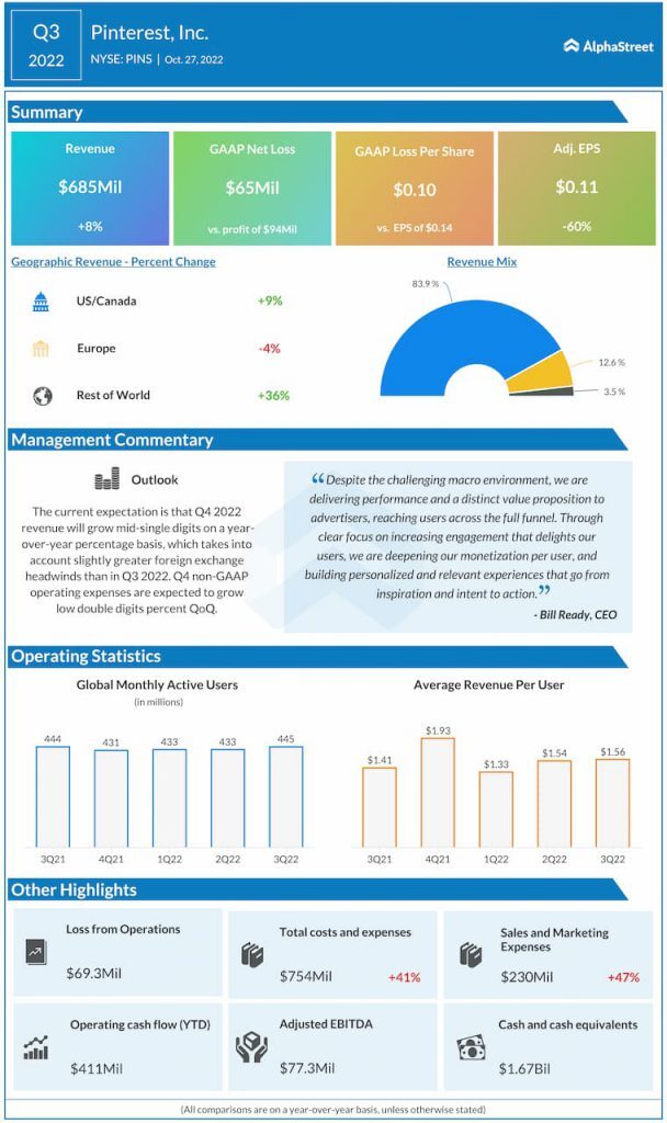 핀터레스트(PINS) 2022년 3분기 실적발표 씸플어닝입니다.