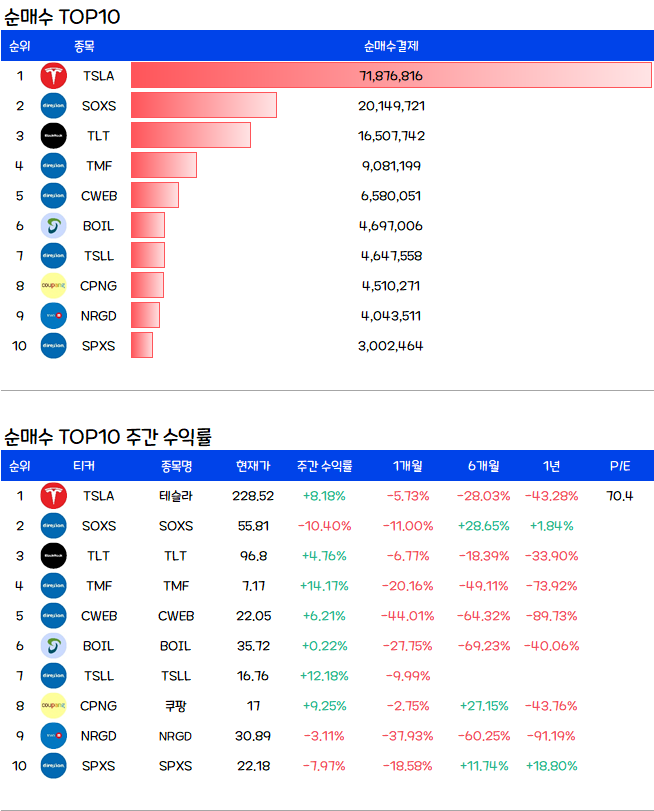 10월 4주차 미국주식 순매수 TOP10, 씸플요약입니다.