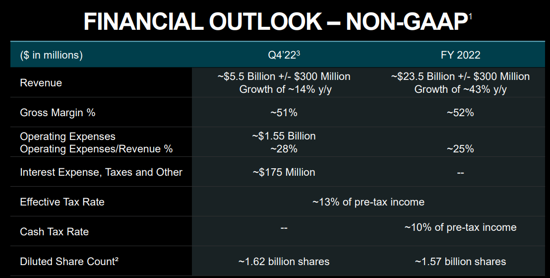 - AMD는 2022년 4분기에 비GAAP 총 마진이 약 51%가 될 것으로 예상하고 있다.