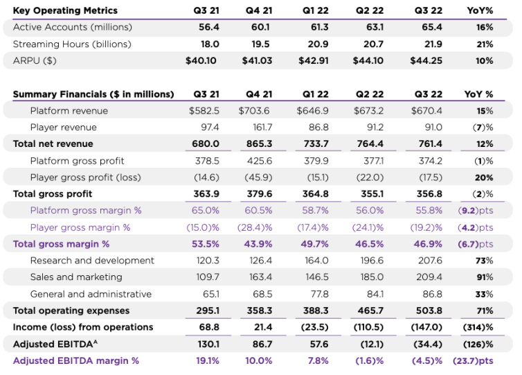- Roku는 2022년 3분기에 230만 개의 증분 활성 계정을 추가하여 6,540만 개에 도달했습니다.