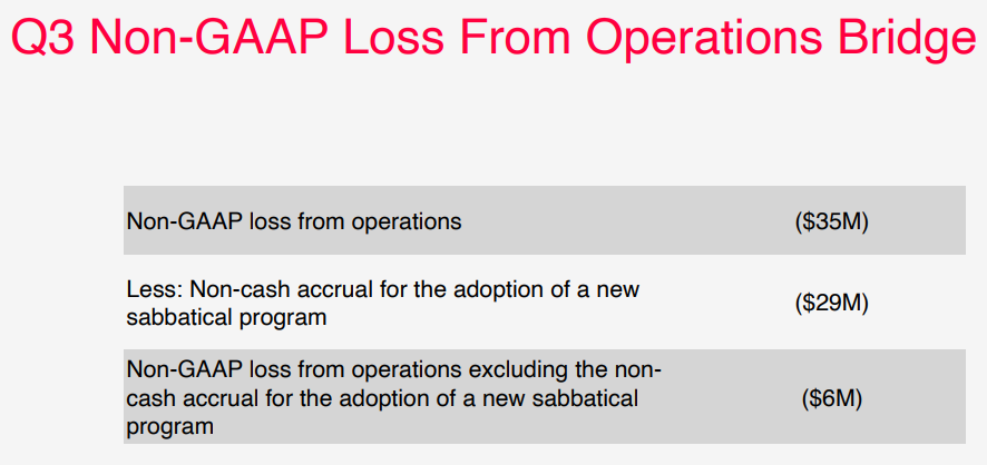 - 2022년 3분기 3,510만 달러의 영업으로 인한 비GAAP 손실과 2021년 3분기의 820만 달러 영업으로 인한 비 GAAP 수익과 비교됩니다.