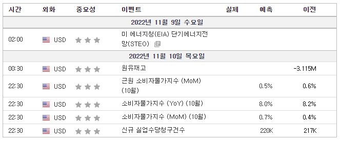 | 11월 3주차 미국 주요 경제일정 및 실적발표일📆 (0) | 2022.11.12 |