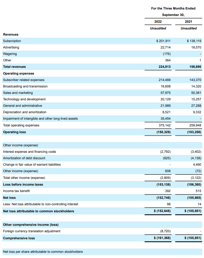 푸보티비(FUBO) 2022년 3분기 실적발표 씸플어닝입니다.
