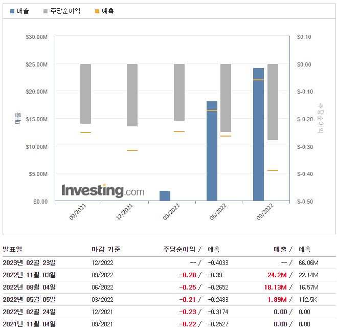 📌주당순이익(EPS) : -$0.4033