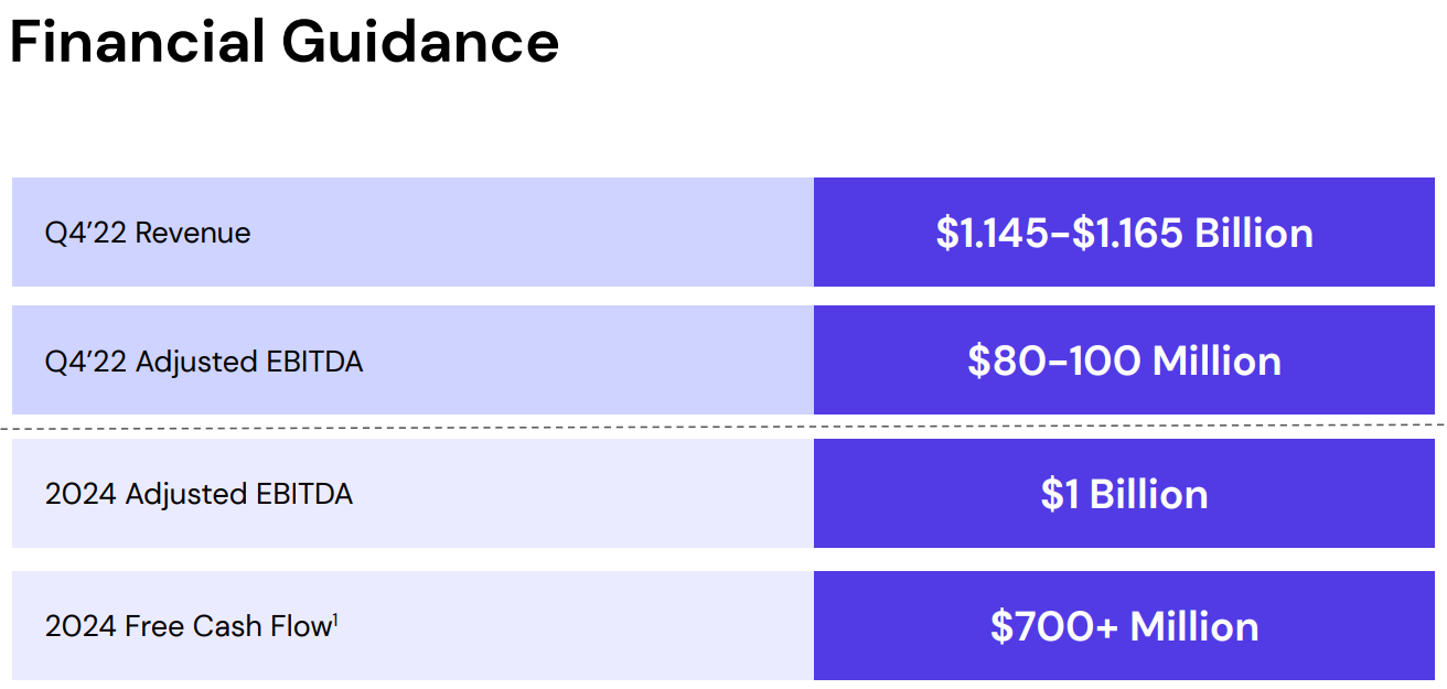 - 2021년 같은 기간 순손실 9970만 달러와 2022년 2분기 순손실 3억7720만 달러에 비해 2022년 3분기 순손실은 4억2220만 달러였다. 3분기 순손실에는 주식기준보상 및 관련 급여세비용 2억2410만 달러와 비시장성 주식투자 및 기타 자산과 관련된 1억3570만 달러의 손상차손금이 포함됩니다. 2021년 3분기 11.5%, 2022년 2분기 38.1%에 비해 3분기 순손실률은 40.1%였다.
