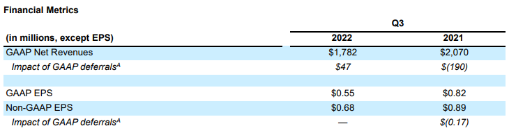 - 액티비전 블리자드는 2021년 3분기에 18억 8천만 달러였던 것에 비해 2022년 9월 30일에 종료된 분기에 18억 3천만 달러의 순예약을 했다. 2021년 3분기 12억 달러에 비해 게임 내 순 예약은 13억 6천만 달러였다.