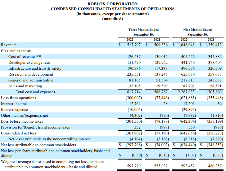 로블록스(RBLX) 2022년 3분기 실적발표 씸플어닝입니다.