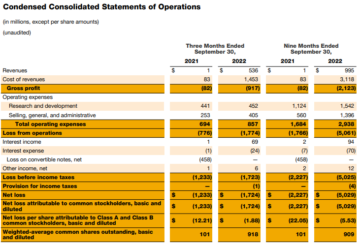 - 우리는 2022년 3분기 운영으로 작년 같은 기간의 7억 7600만 달러와 비교하여 총 17억 7천 4백만 달러의 손실을 경험했습니다.