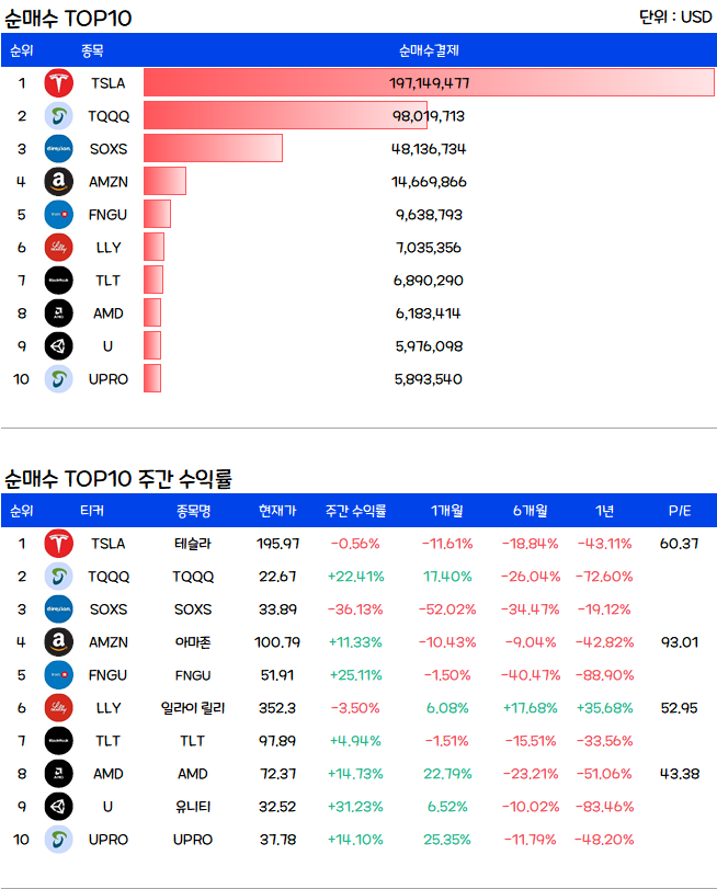 11월 2주차 미국주식 순매수 TOP100, 씸플요약입니다.