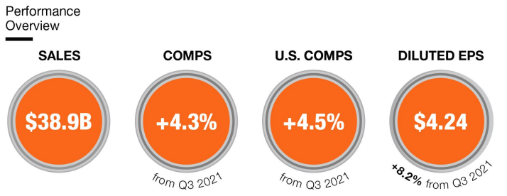 - 2022 회계연도 3분기 비교 판매는 4.3% 증가했고, 미국 비교 판매는 4.5% 증가했다.