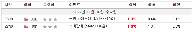 - 미국 핵심 소매 판매 MoM 실제 1.3% (예측 0.5%, 이전 0.1%)